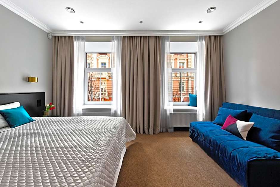 For those who prefer a classic setup, the Classic Double or Twin Room is an excellent choice, accommodating up to two adults with its 194 square feet. The room features either two twin beds or a queen-size bed, depending on your preference. Lastly, the Superior Double Room with Sofa provides both comfort and flexibility for up to two adults and two children, offering a generous 248 square feet of space. All rooms include modern amenities and private bathrooms, ensuring a pleasant and convenient stay. At 15th Avenue, you'll find the perfect room to suit your needs and make your stay in Vilnius truly memorable.